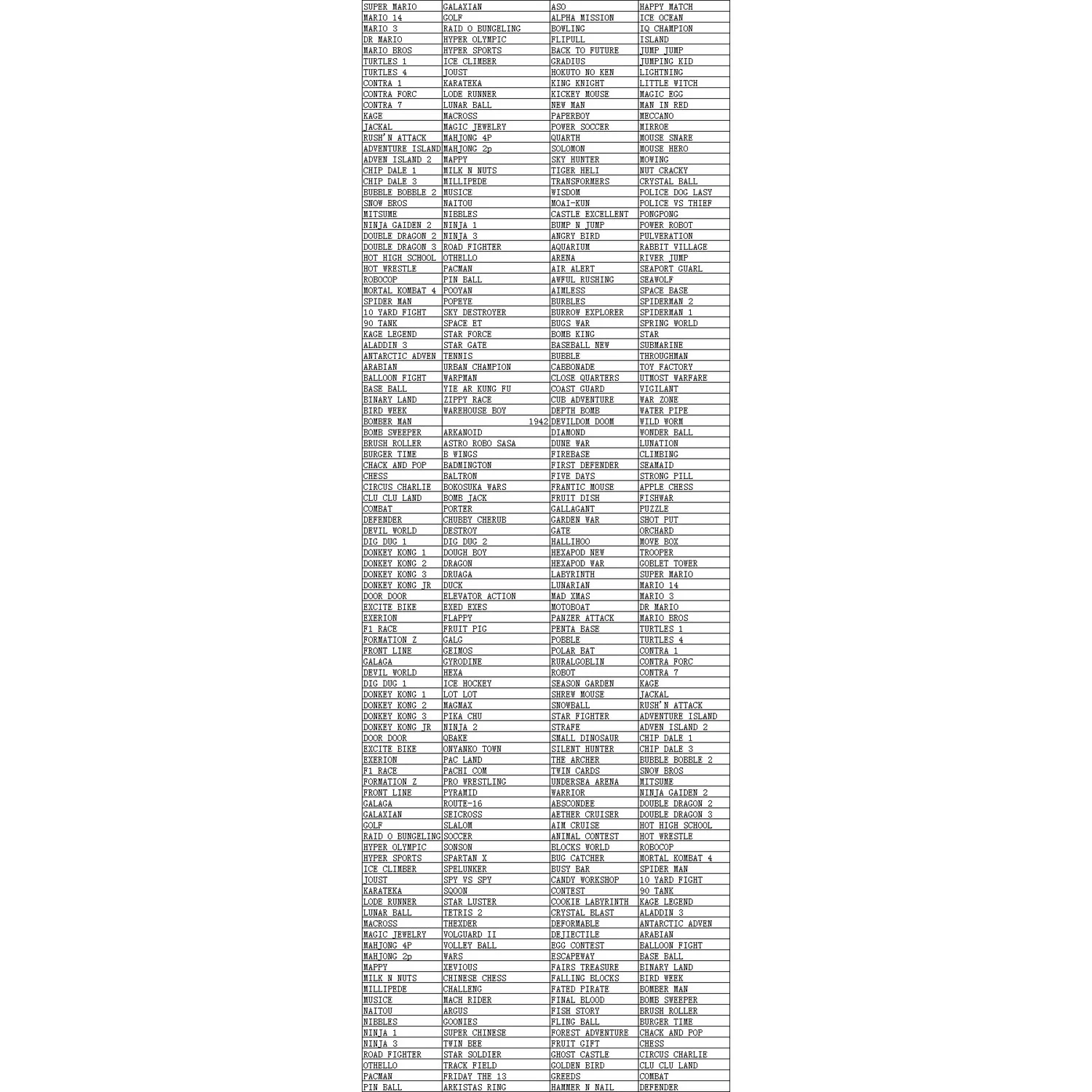 Oyunlar 8 bit üzerine çoğunlukla Nintendo tabanlı NES ve SNES, Commodore 64 oyunlarını içermektedir. En çok bilinen Super Mario oyunlarını seri halde oynayabiliyorsunuz. Cihazın sesi cızırdak bir halde, ses ayarı bölümünden ayarlayabiliyorsunuz ancak bir süre polifonik bir melodi olduğu için sizi rahatsız etmeye başlıyor.